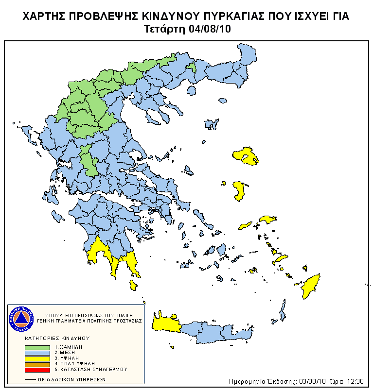 Ημερήσιος Χάρτης Πρόβλεψης Κινδύνου Πυρκαγιάς 04/08/2010