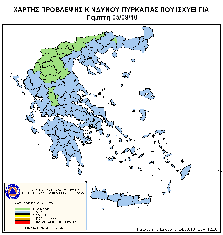 Ημερήσιος Χάρτης Πρόβλεψης Κινδύνου Πυρκαγιάς 05/08/2010