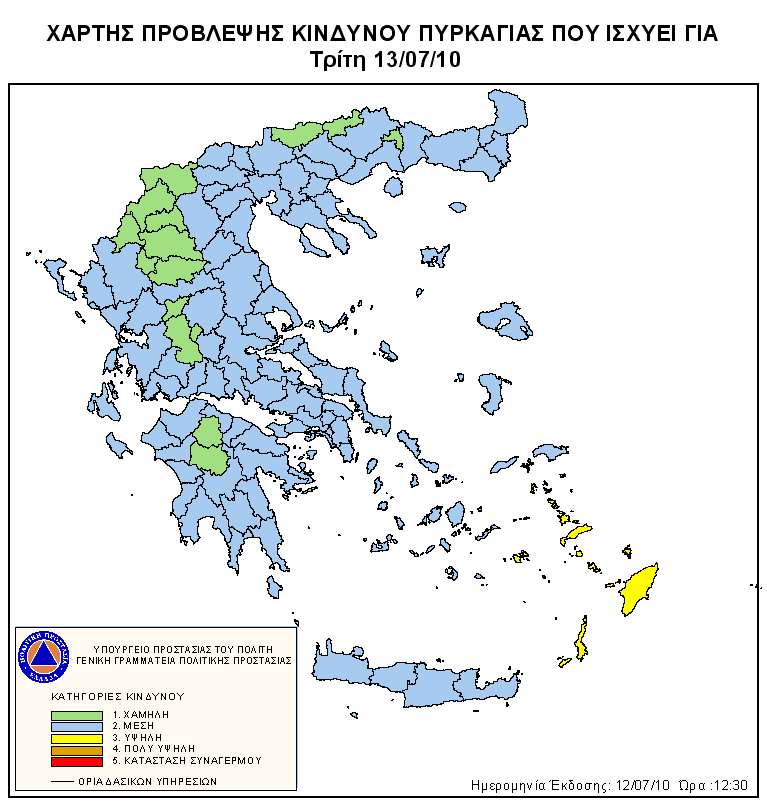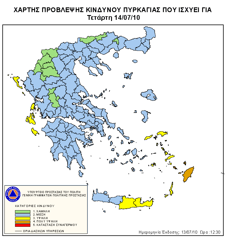 Ημερήσιος Χάρτης Πρόβλεψης Κινδύνου Πυρκαγιάς 13/07/2010