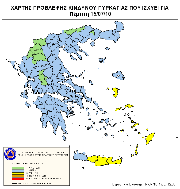 Ημερήσιος Χάρτης Πρόβλεψης Κινδύνου Πυρκαγιάς 15/07/2010