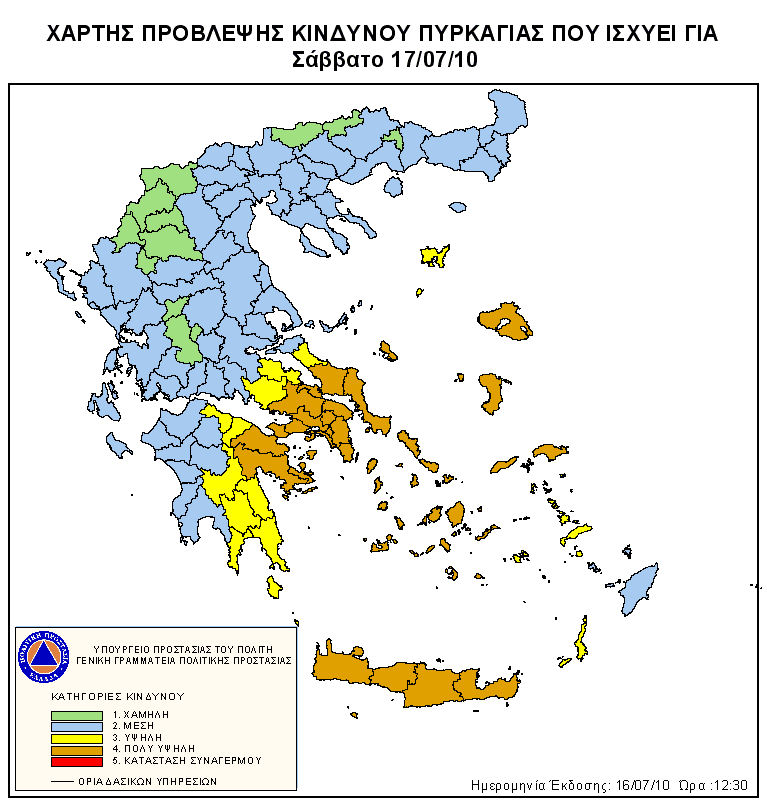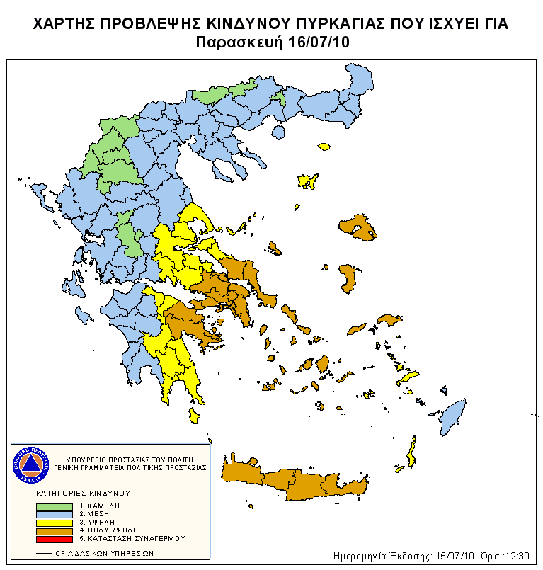 Ημερήσιος Χάρτης Πρόβλεψης Κινδύνου Πυρκαγιάς 16/07/2010