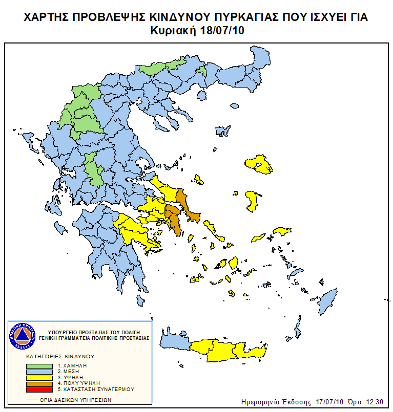 Ημερήσιος Χάρτης Πρόβλεψης Κινδύνου Πυρκαγιάς 18/07/2010