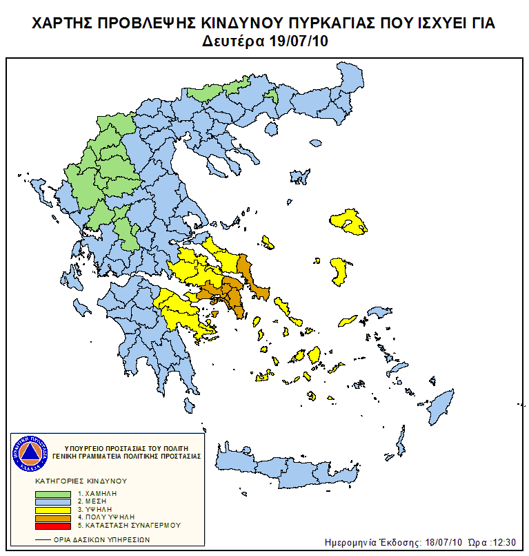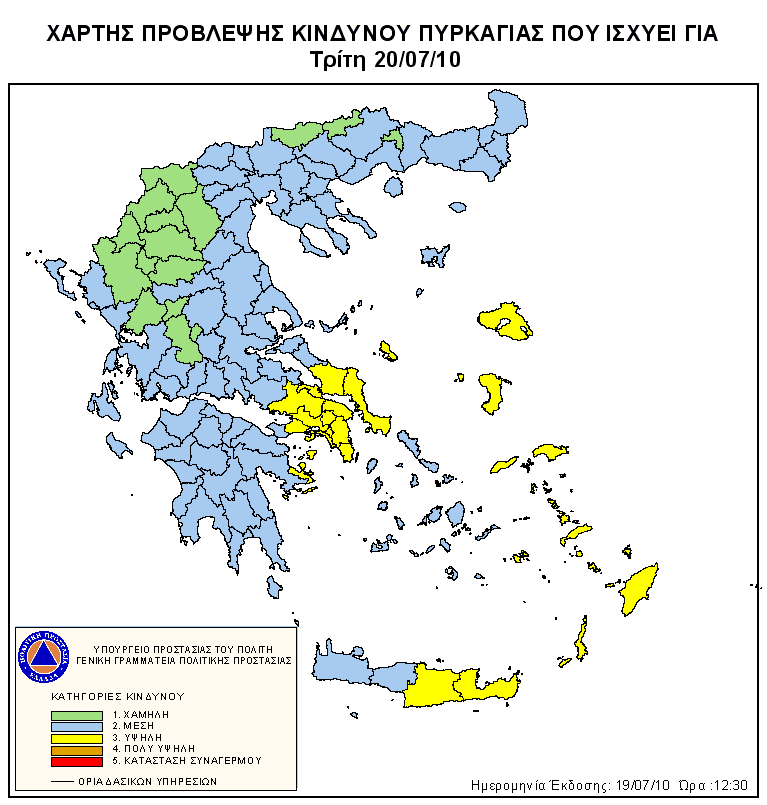 Ημερήσιος Χάρτης Πρόβλεψης Κινδύνου Πυρκαγιάς 19/07/2010