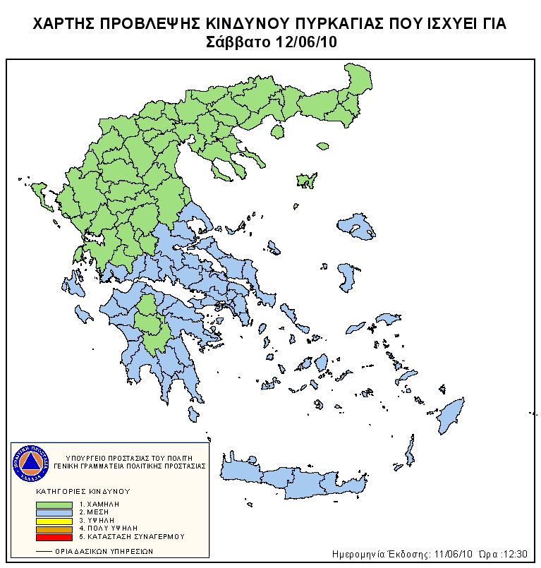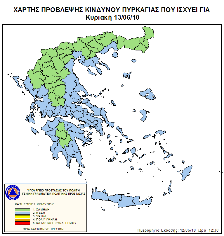 Ημερήσιος Χάρτης Πρόβλεψης Κινδύνου Πυρκαγιάς 12/06/2010