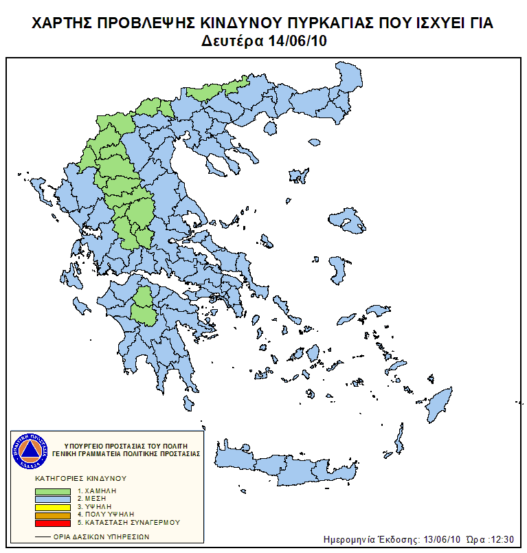 Ημερήσιος Χάρτης Πρόβλεψης Κινδύνου Πυρκαγιάς 13/06/2010