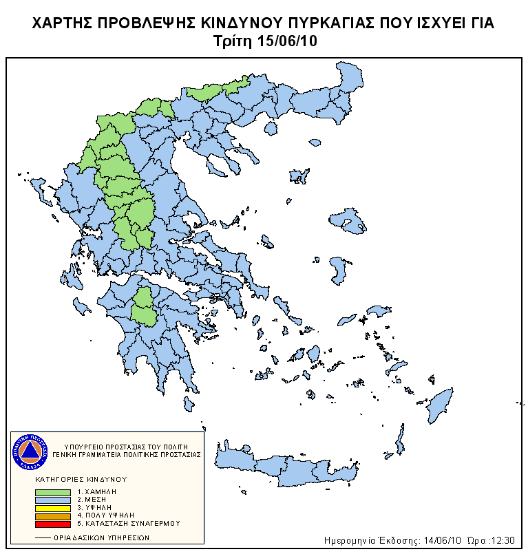Ημερήσιος Χάρτης Πρόβλεψης Κινδύνου Πυρκαγιάς 15/06/2010