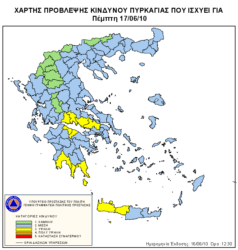 Ημερήσιος Χάρτης Πρόβλεψης Κινδύνου Πυρκαγιάς 16/06/2010