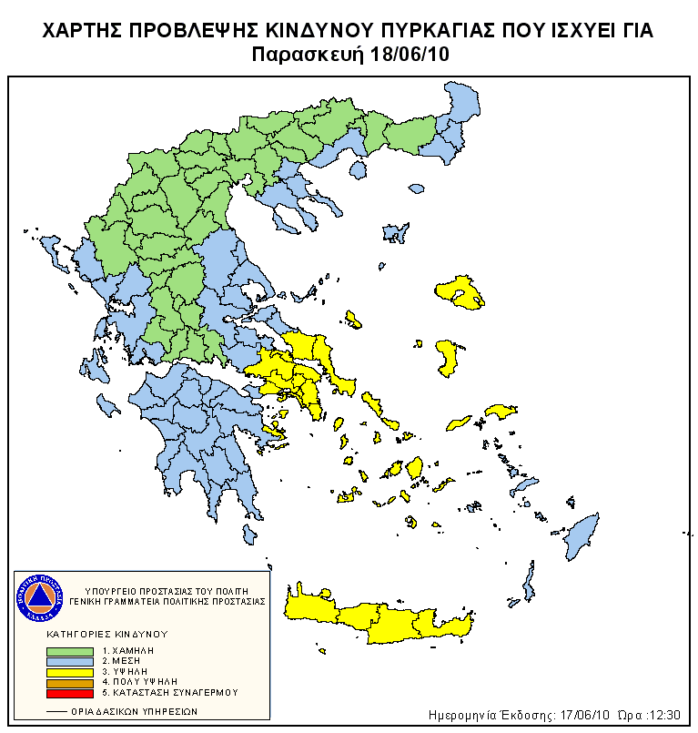 Ημερήσιος Χάρτης Πρόβλεψης Κινδύνου Πυρκαγιάς 18/06/2010