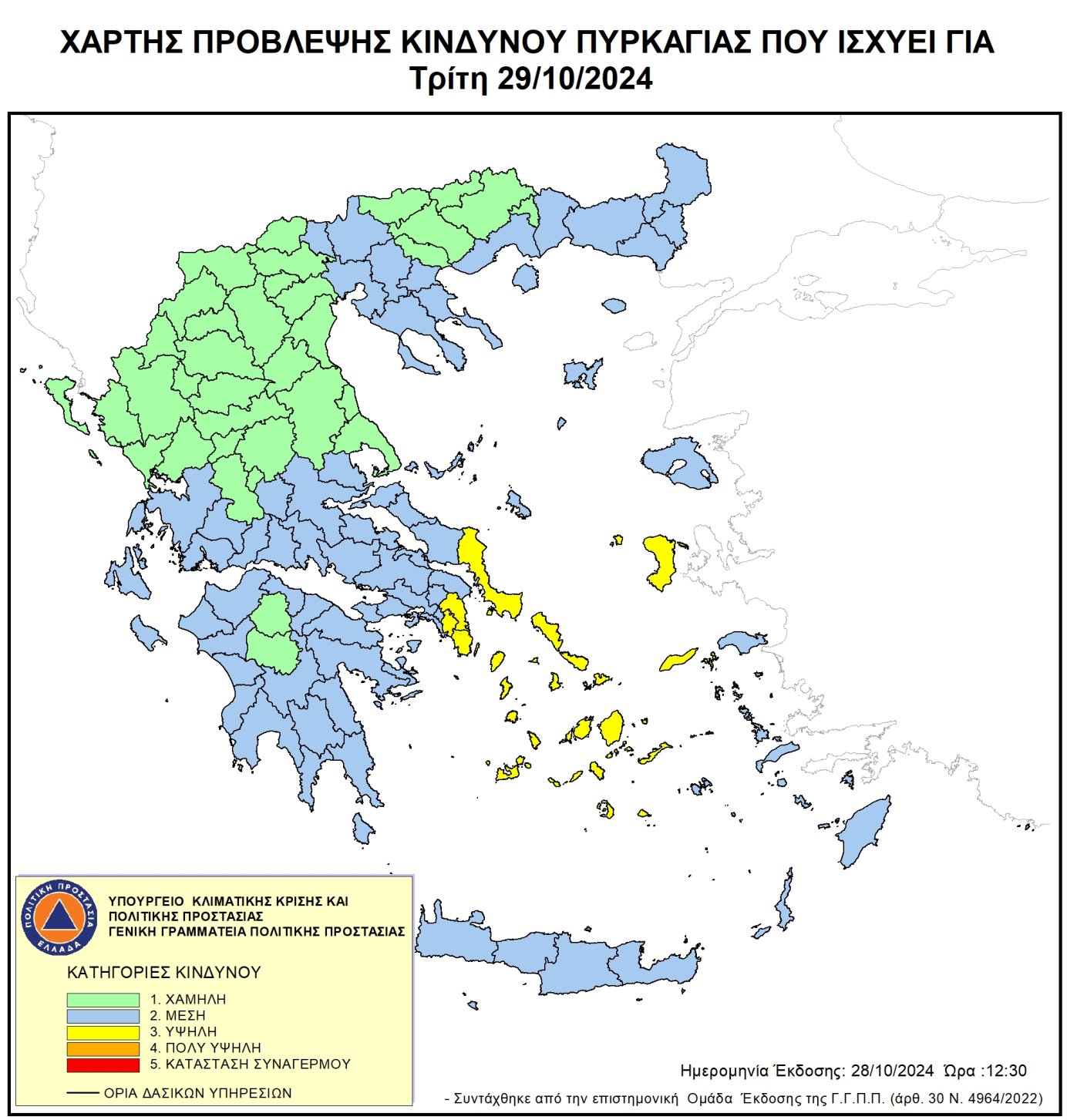 Ημερήσιος Χάρτης Πρόβλεψης Κινδύνου Πυρκαγιάς για 29/10/2024