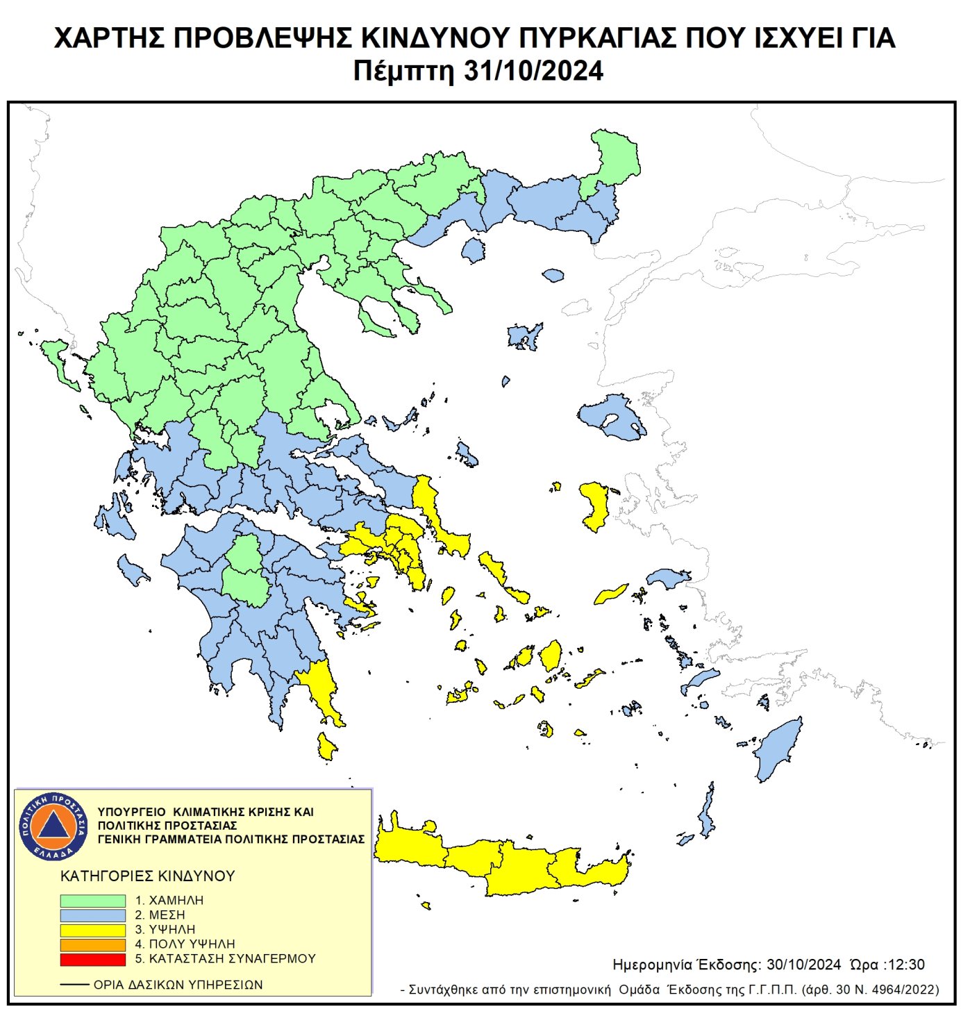 Ημερήσιος Χάρτης Πρόβλεψης Κινδύνου Πυρκαγιάς για 31/10/2024