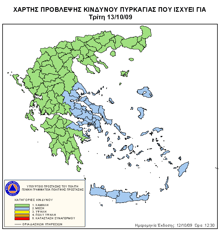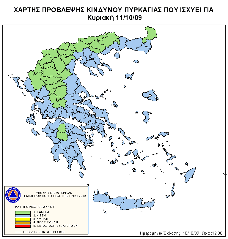 Ημερήσιος Χάρτης Πρόβλεψης Κινδύνου Πυρκαγιάς 12/10/2009