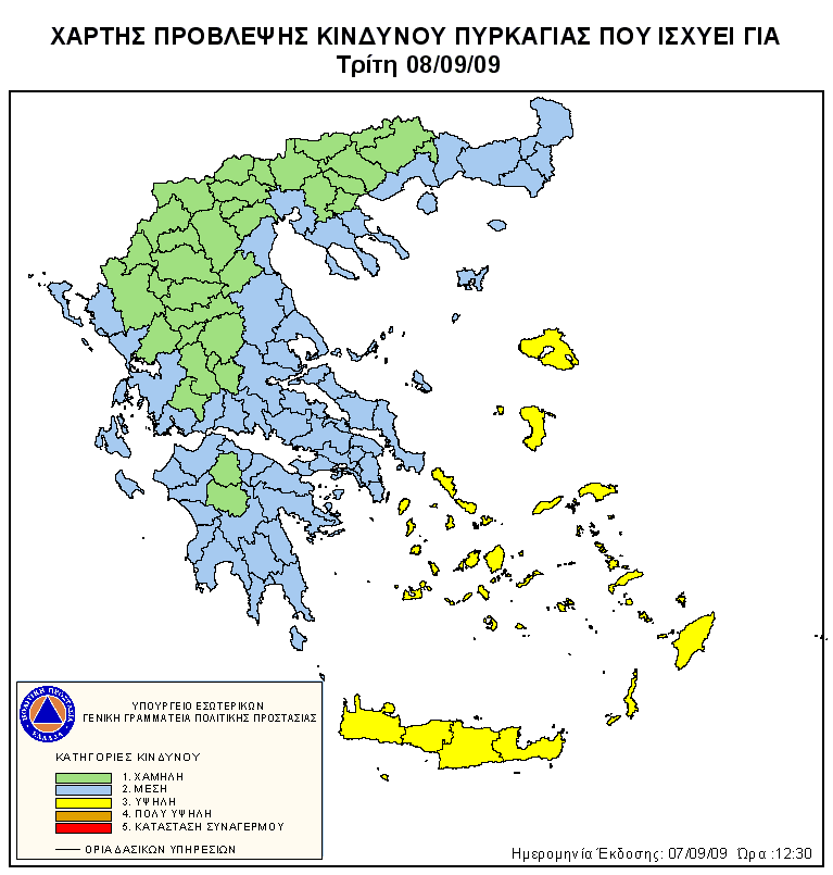 Ημερήσιος Χάρτης Πρόβλεψης Κινδύνου Πυρκαγιάς 08/09/2009