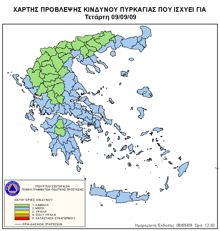 Ημερήσιος Χάρτης Πρόβλεψης Κινδύνου Πυρκαγιάς 09/09/2009