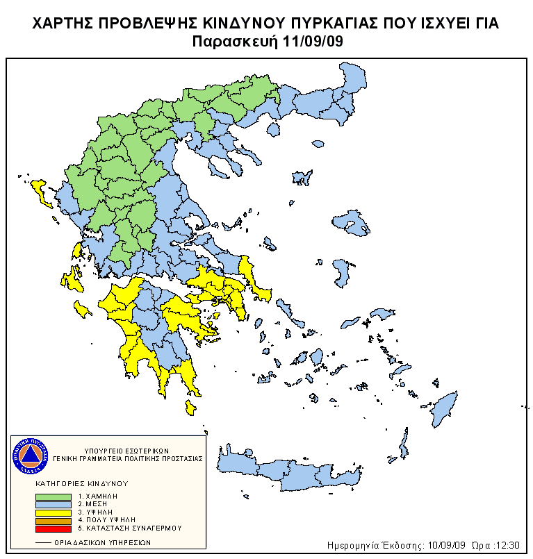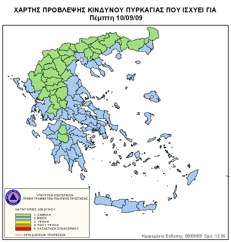 Ημερήσιος Χάρτης Πρόβλεψης Κινδύνου Πυρκαγιάς 10/09/2009