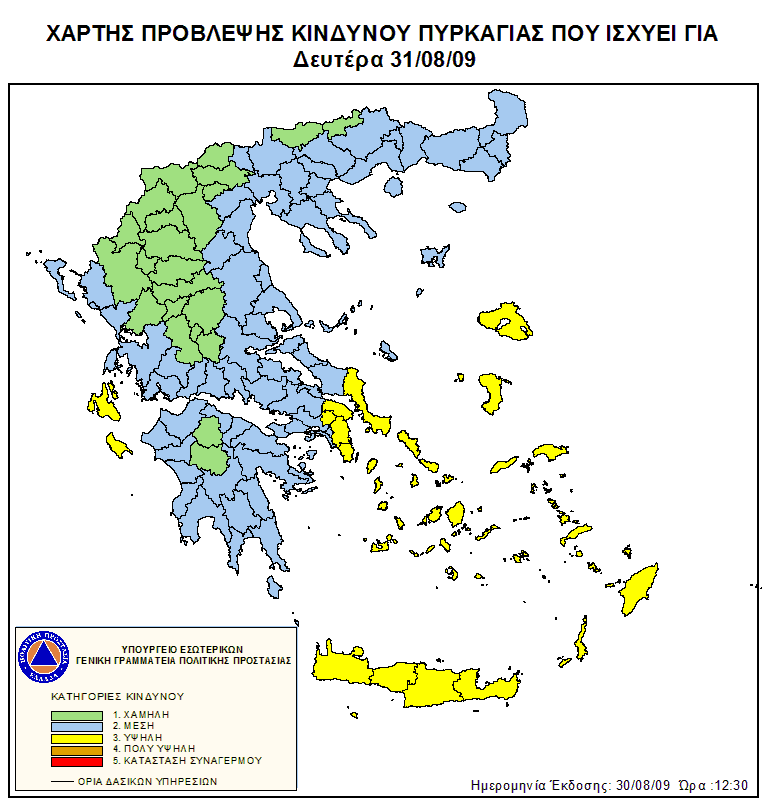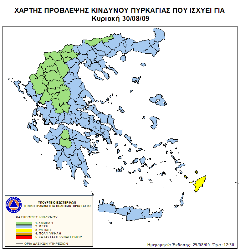 Ημερήσιος Χάρτης Πρόβλεψης Κινδύνου Πυρκαγιάς 30/08/2009
