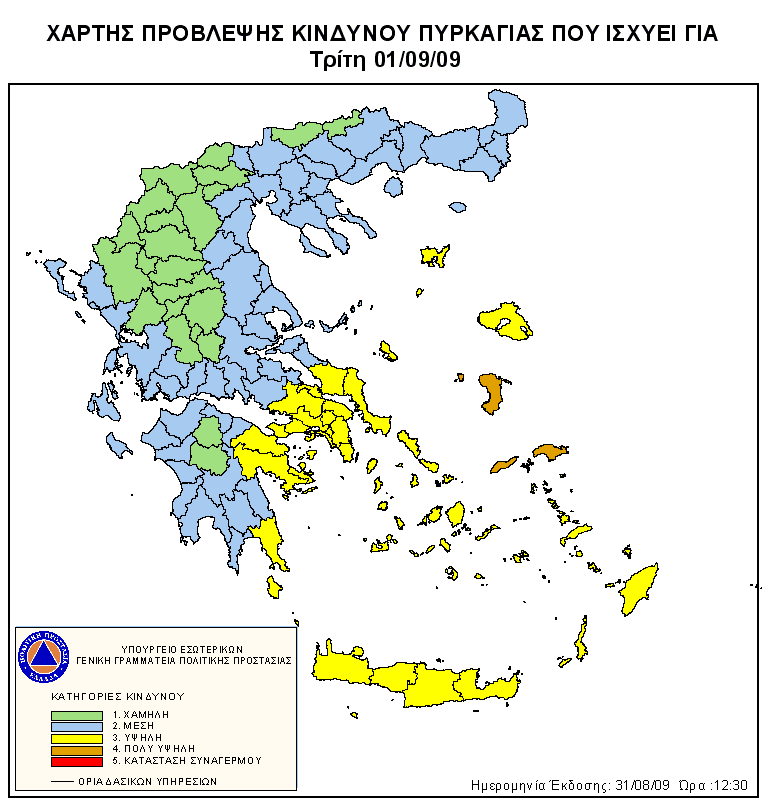 Ημερήσιος Χάρτης Πρόβλεψης Κινδύνου Πυρκαγιάς 31/08/2009