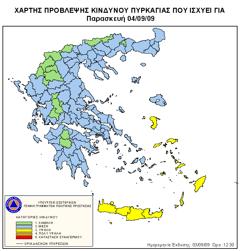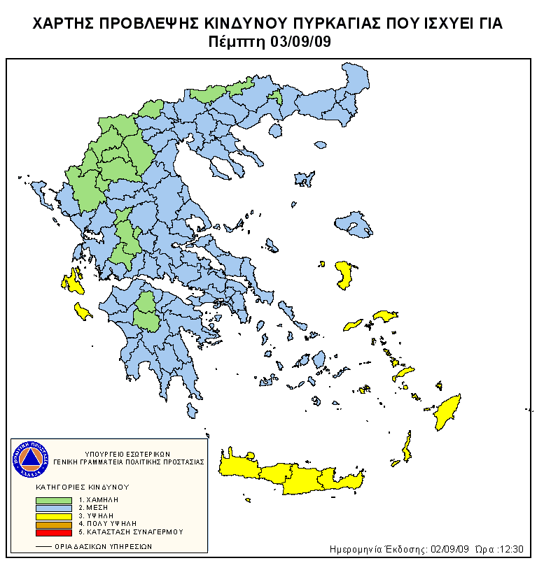 Ημερήσιος Χάρτης Πρόβλεψης Κινδύνου Πυρκαγιάς 03/09/2009