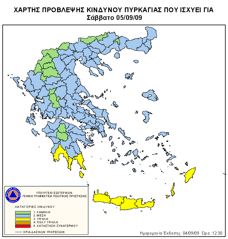 Ημερήσιος Χάρτης Πρόβλεψης Κινδύνου Πυρκαγιάς 05/09/2009
