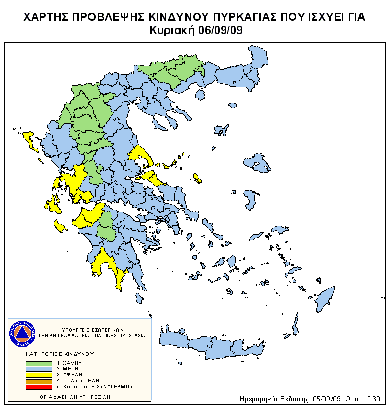 Ημερήσιος Χάρτης Πρόβλεψης Κινδύνου Πυρκαγιάς 06/09/2009