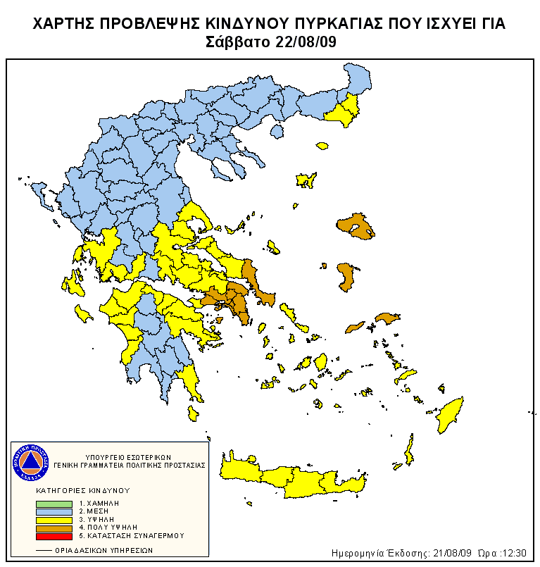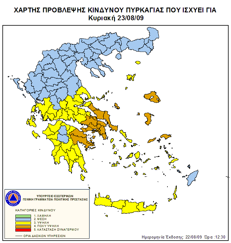 Ημερήσιος Χάρτης Πρόβλεψης Κινδύνου Πυρκαγιάς 22/08/2009
