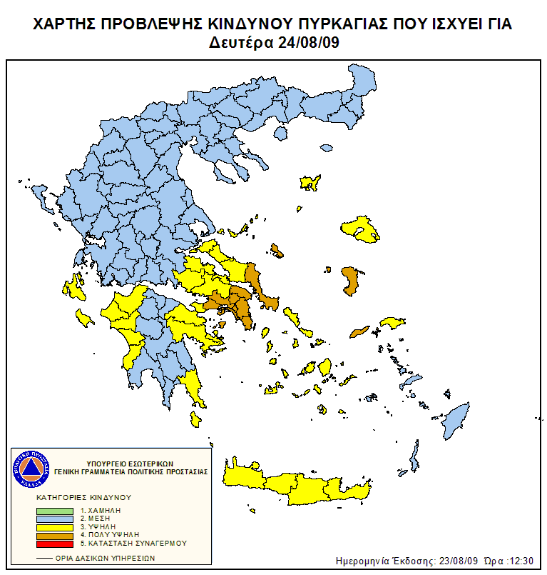 Ημερήσιος Χάρτης Πρόβλεψης Κινδύνου Πυρκαγιάς 24/08/2009