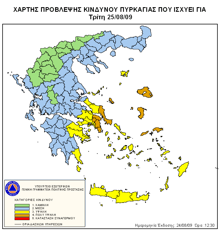 Ημερήσιος Χάρτης Πρόβλεψης Κινδύνου Πυρκαγιάς 25/08/2009