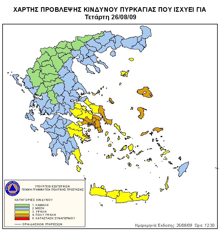 Ημερήσιος Χάρτης Πρόβλεψης Κινδύνου Πυρκαγιάς 26/08/2009