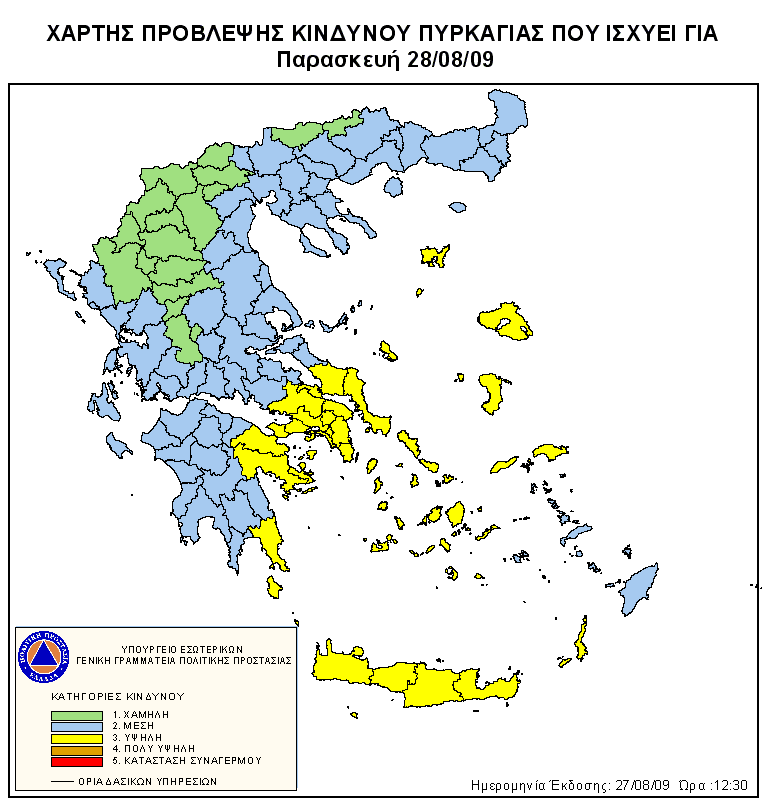 Ημερήσιος Χάρτης Πρόβλεψης Κινδύνου Πυρκαγιάς 27/08/2009
