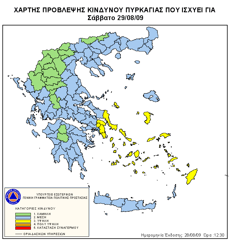 Ημερήσιος Χάρτης Πρόβλεψης Κινδύνου Πυρκαγιάς 28/08/2009