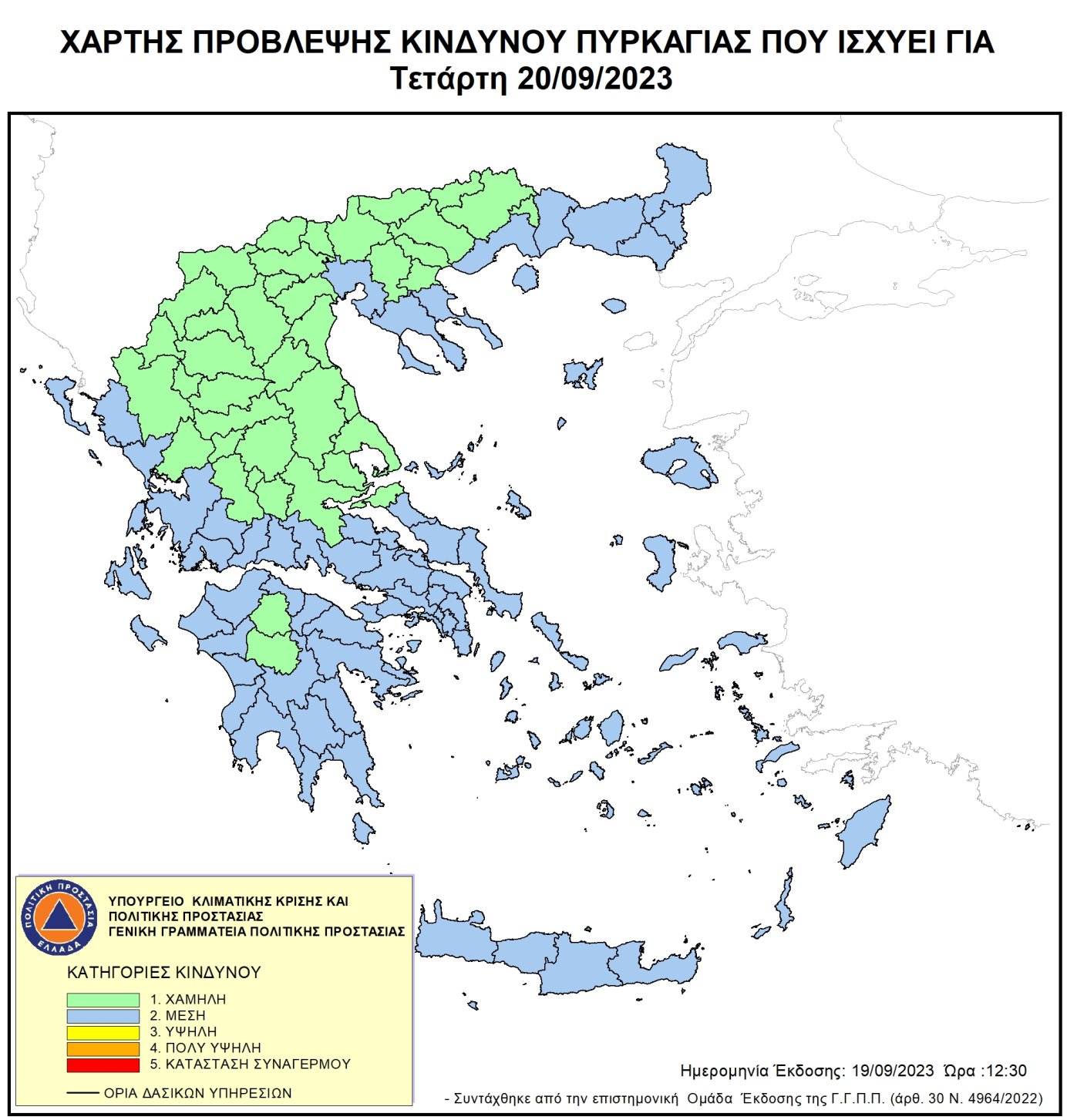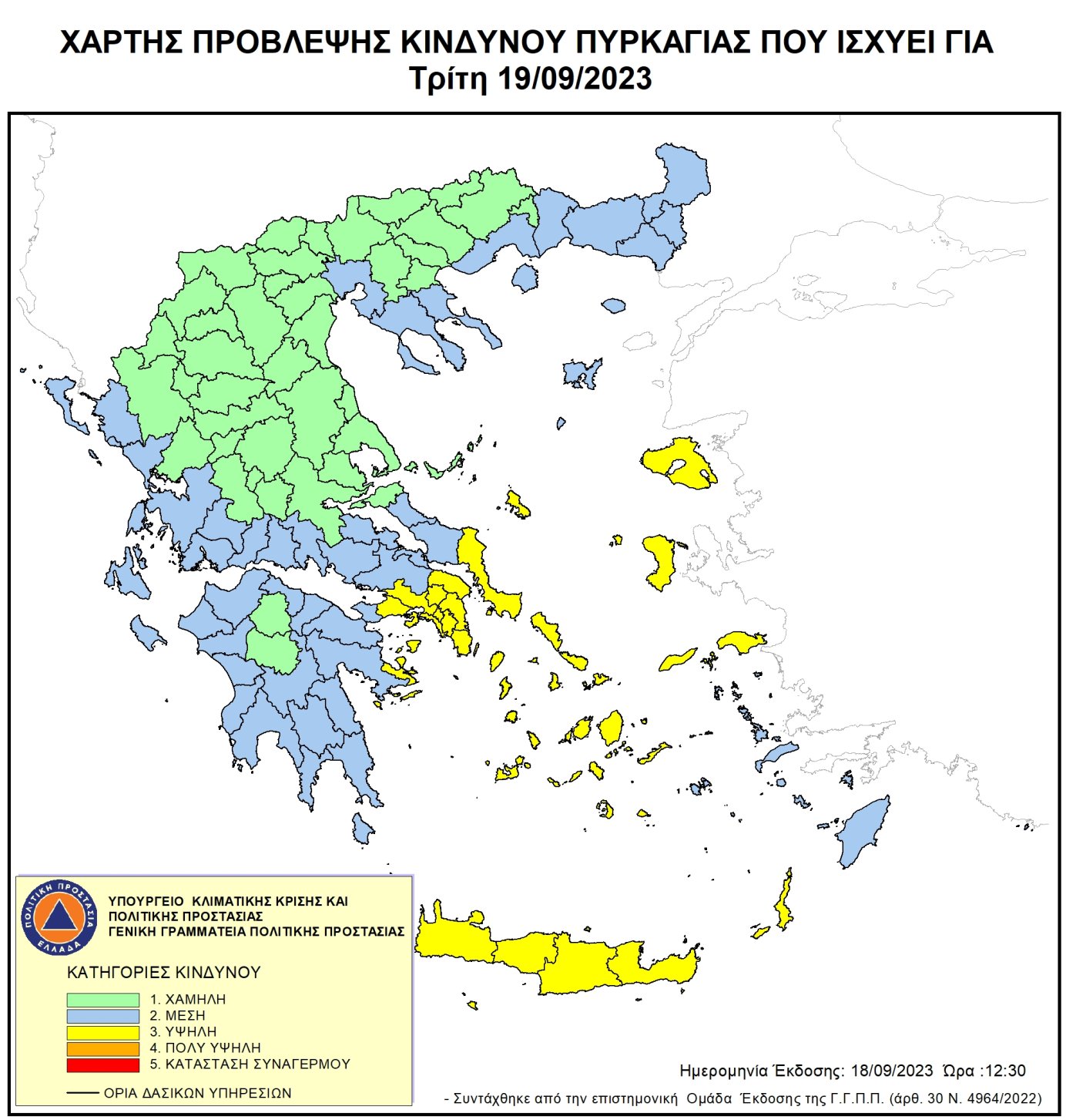 Ημερήσιος Χάρτης Πρόβλεψης Κινδύνου Πυρκαγιάς για 19/09/2023