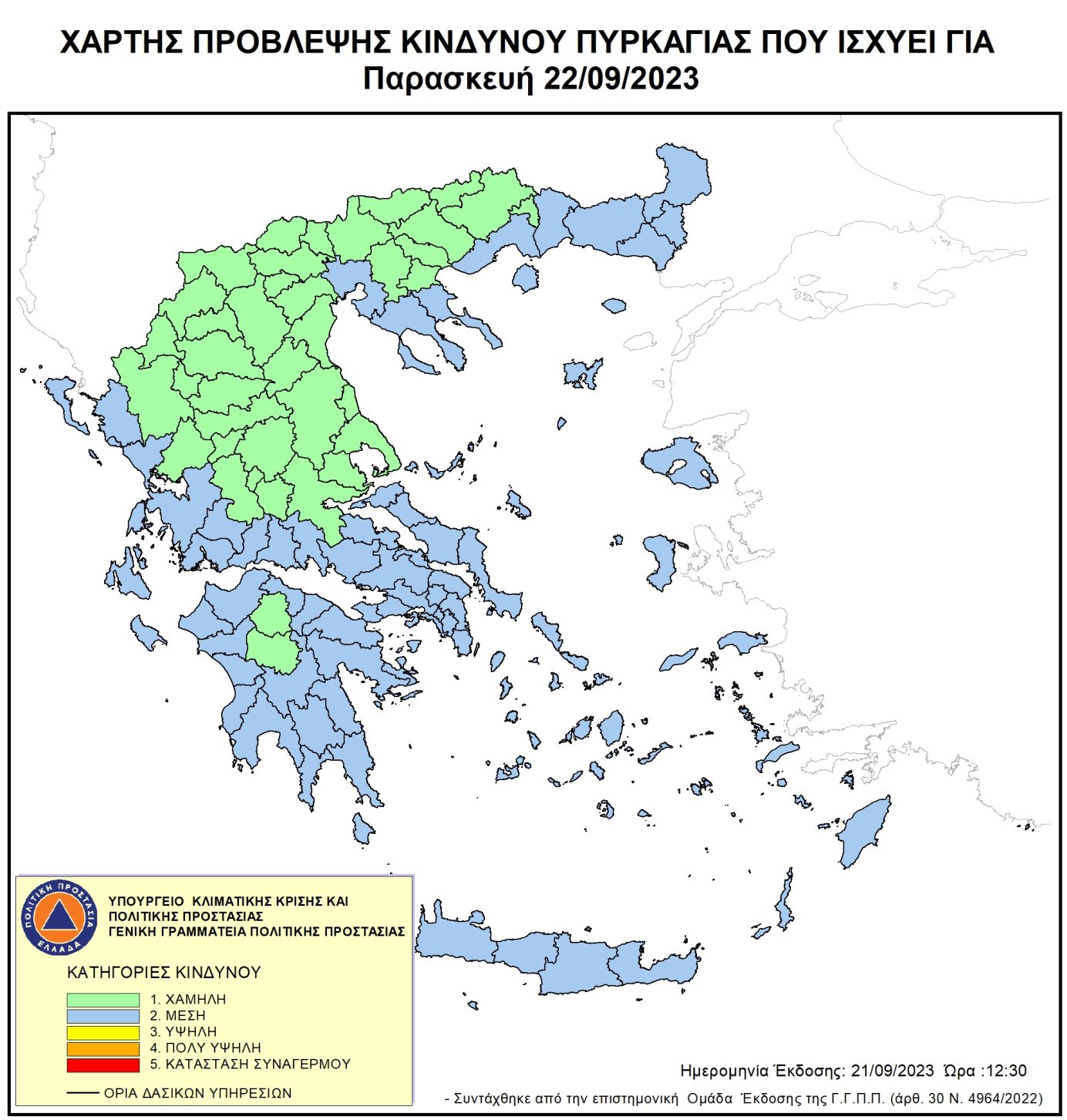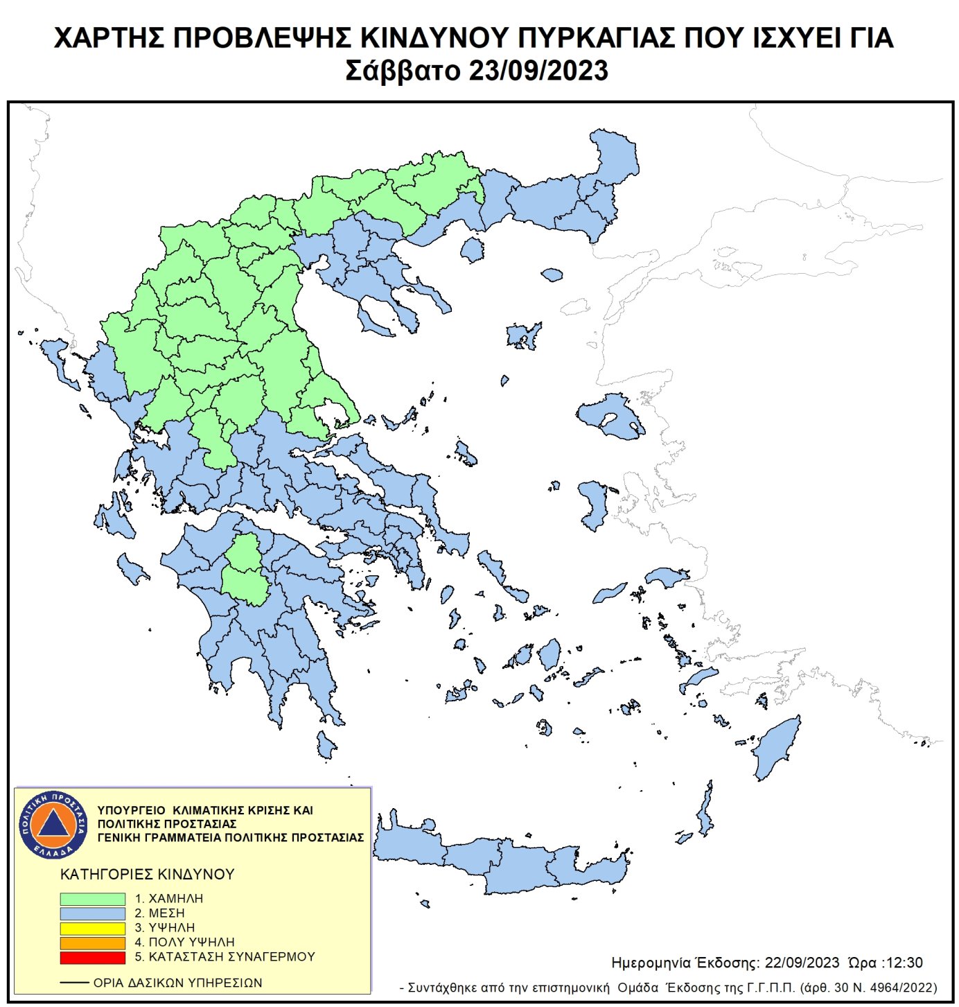 Ημερήσιος Χάρτης Πρόβλεψης Κινδύνου Πυρκαγιάς για 22/09/2023