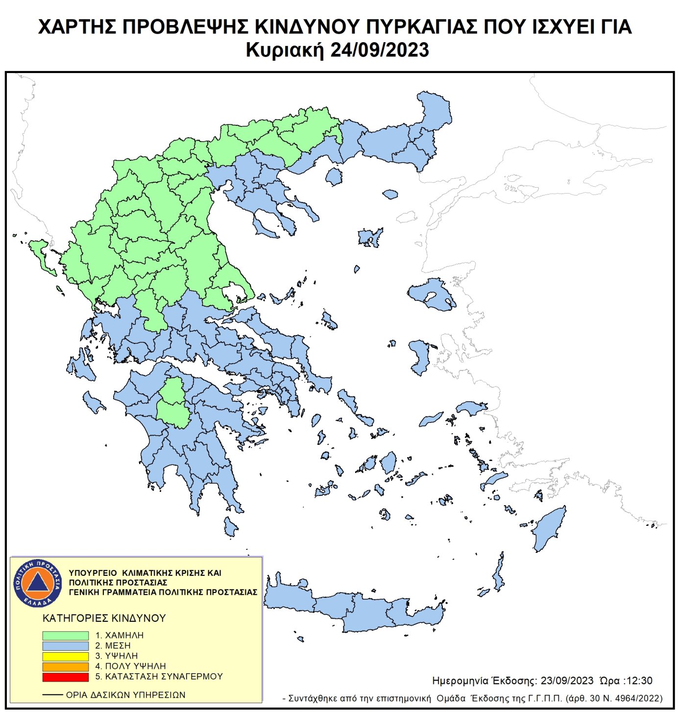 Ημερήσιος Χάρτης Πρόβλεψης Κινδύνου Πυρκαγιάς για 23/09/2023
