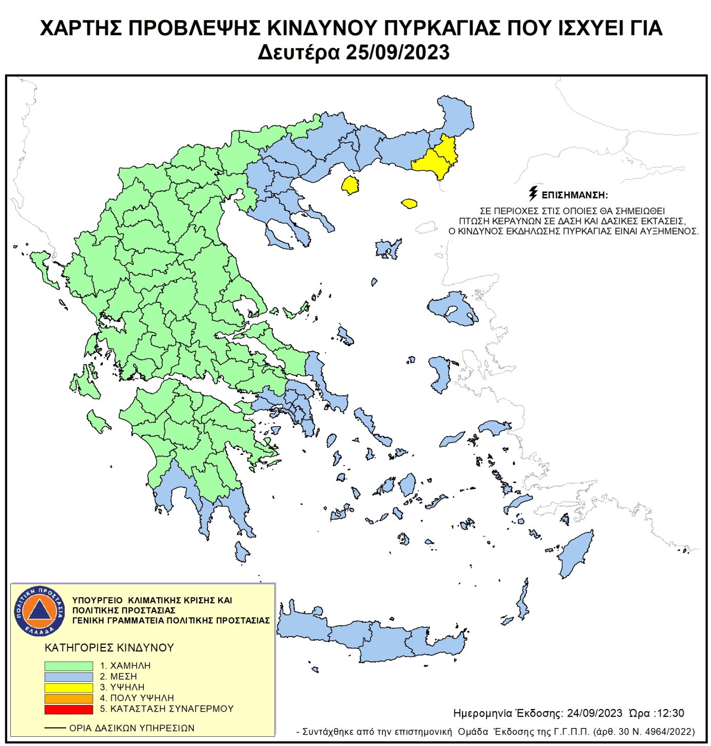 Ημερήσιος Χάρτης Πρόβλεψης Κινδύνου Πυρκαγιάς για 25/09/2023