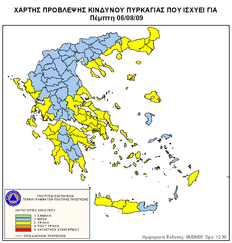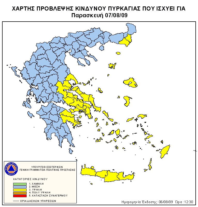 Ημερήσιος Χάρτης Πρόβλεψης Κινδύνου Πυρκαγιάς 06/08/2009