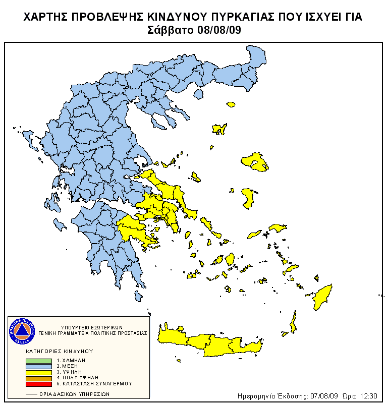 Ημερήσιος Χάρτης Πρόβλεψης Κινδύνου Πυρκαγιάς 08/08/2009