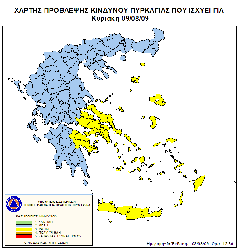 Ημερήσιος Χάρτης Πρόβλεψης Κινδύνου Πυρκαγιάς 09/08/2009