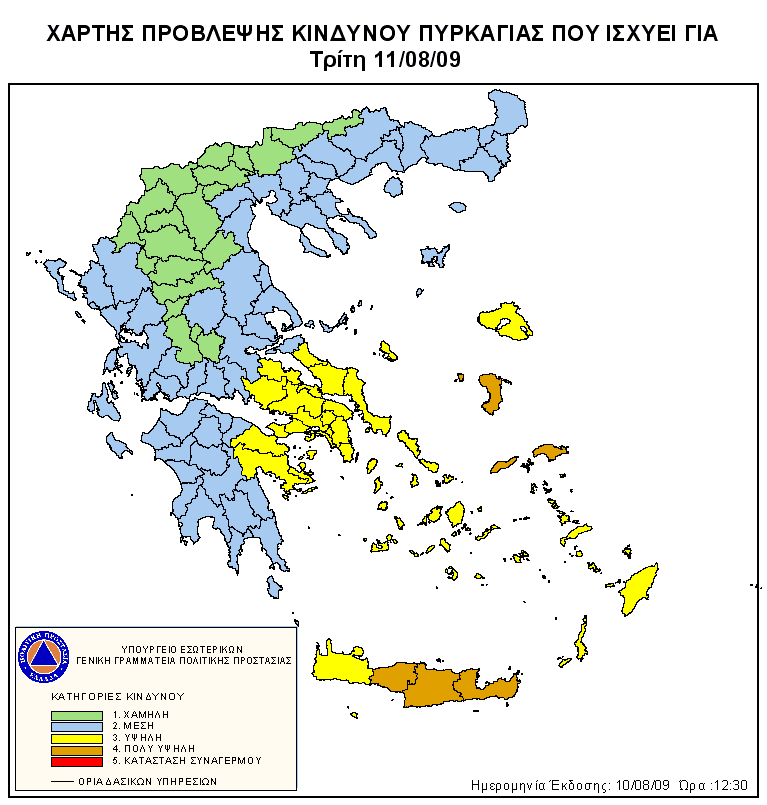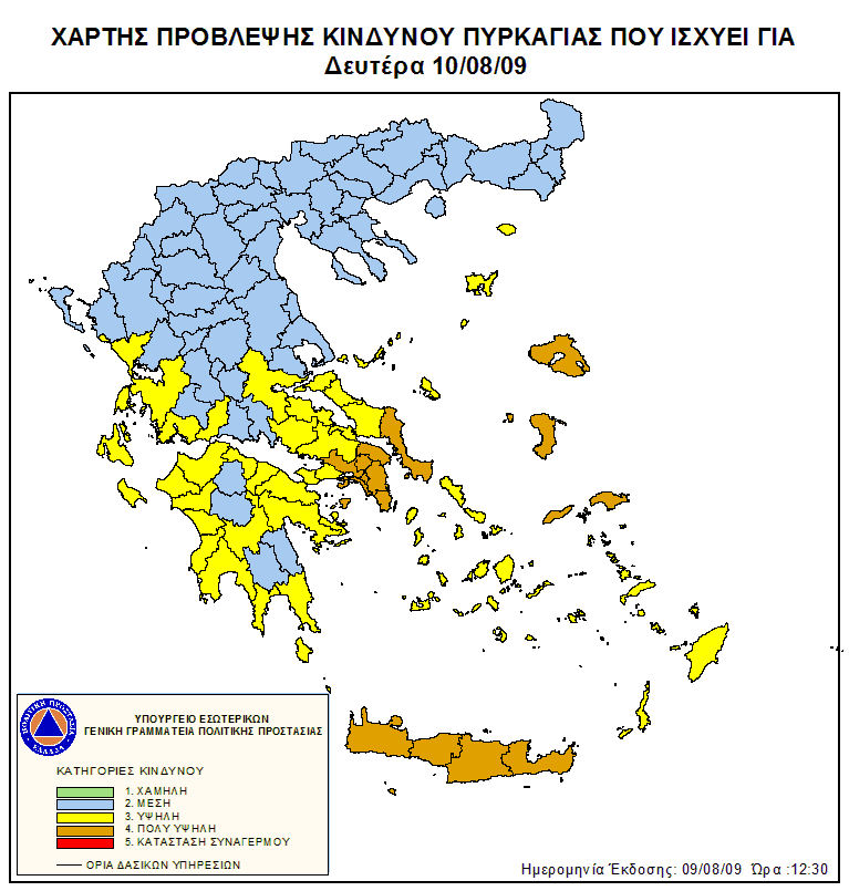 Ημερήσιος Χάρτης Πρόβλεψης Κινδύνου Πυρκαγιάς 10/08/2009
