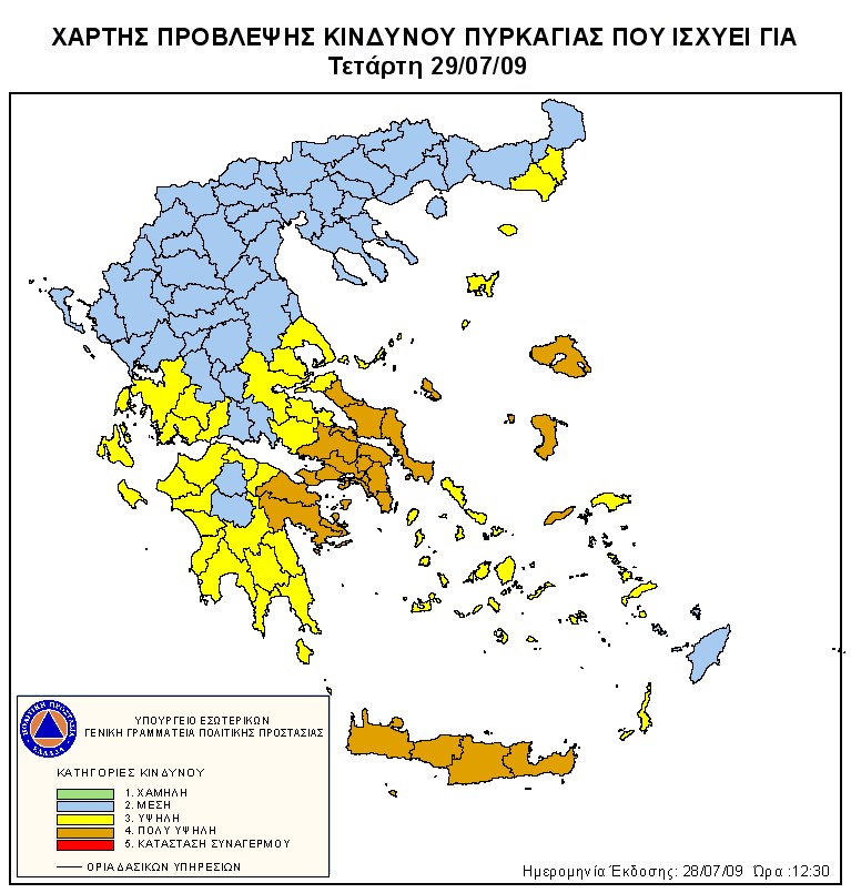Ημερήσιος Χάρτης Πρόβλεψης Κινδύνου Πυρκαγιάς 29/07/2009