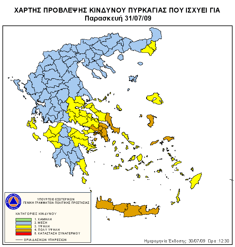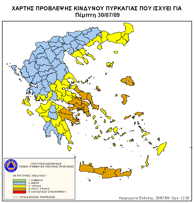 Ημερήσιος Χάρτης Πρόβλεψης Κινδύνου Πυρκαγιάς 30/07/2009