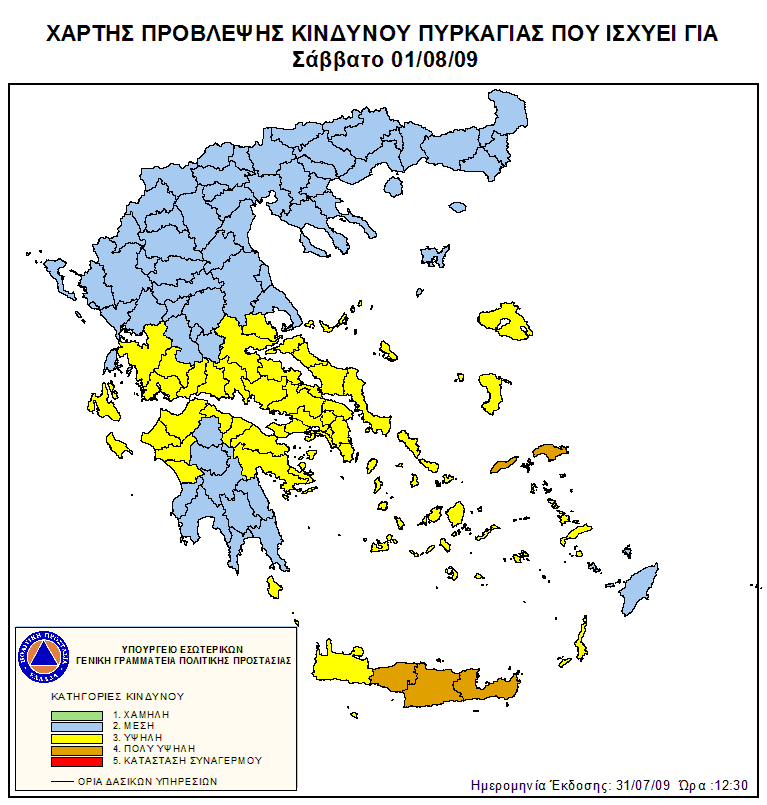 Ημερήσιος Χάρτης Πρόβλεψης Κινδύνου Πυρκαγιάς 01/08/2009