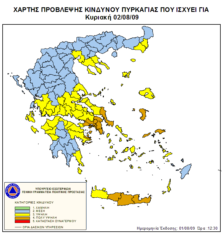 Ημερήσιος Χάρτης Πρόβλεψης Κινδύνου Πυρκαγιάς 02/08/2009