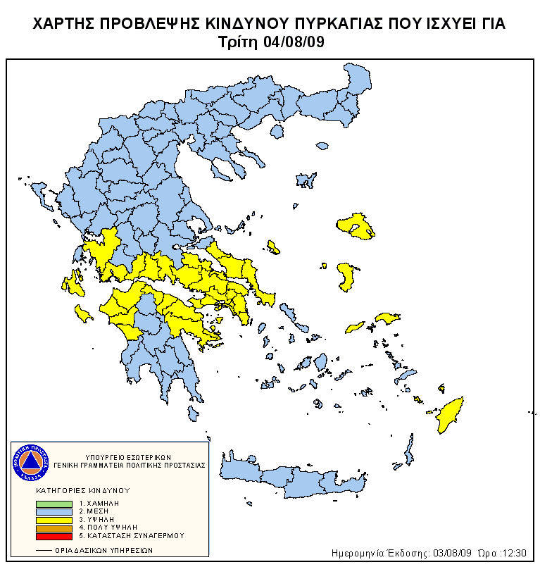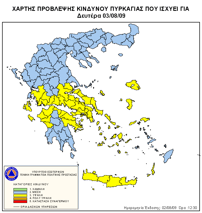 Ημερήσιος Χάρτης Πρόβλεψης Κινδύνου Πυρκαγιάς 03/08/2009