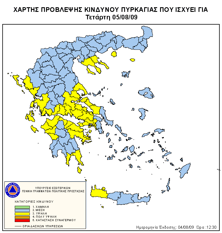 Ημερήσιος Χάρτης Πρόβλεψης Κινδύνου Πυρκαγιάς 05/08/2009