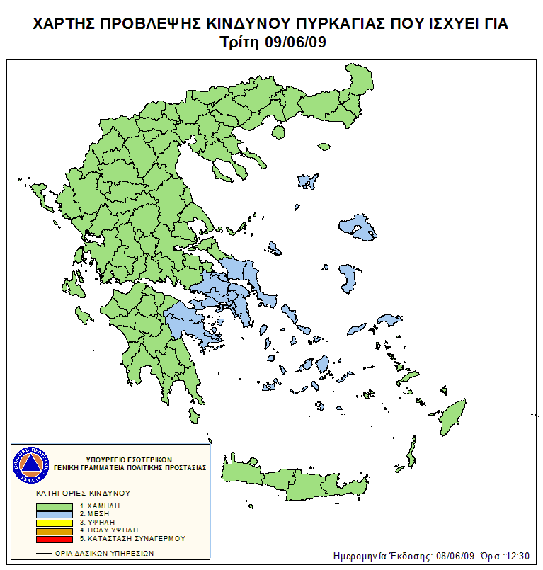 Ημερήσιος Χάρτης Πρόβλεψης Κινδύνου Πυρκαγιάς 08/06/2009