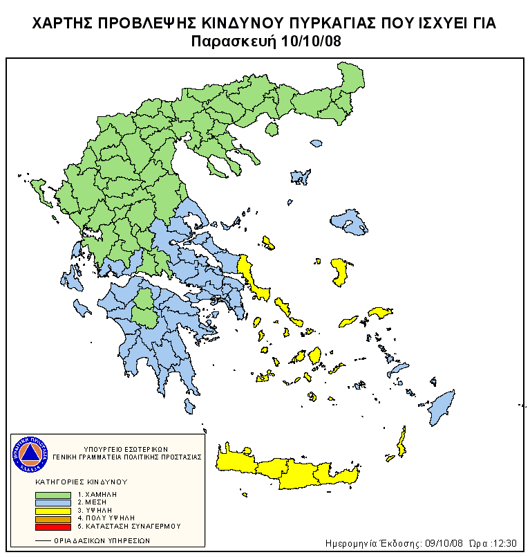 Ημερήσιος Χάρτης Πρόβλεψης Κινδύνου Πυρκαγιάς 10/10/2008