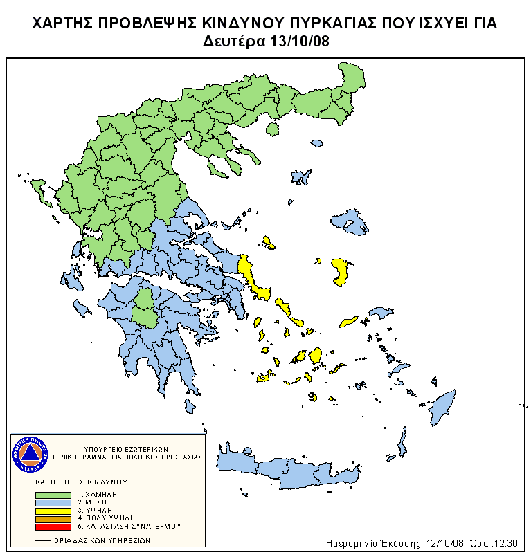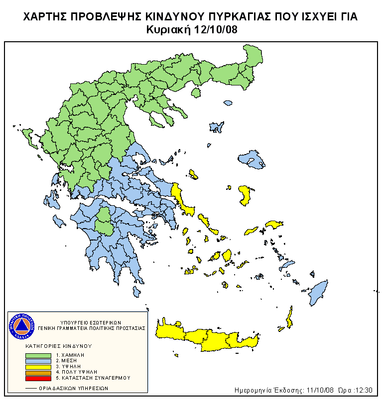 Ημερήσιος Χάρτης Πρόβλεψης Κινδύνου Πυρκαγιάς 12/10/2008