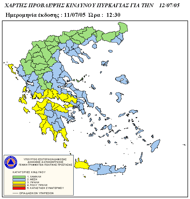 Ημερήσιος Χάρτης Πρόβλεψης Κινδύνου Πυρκαγιάς 12/07/2005