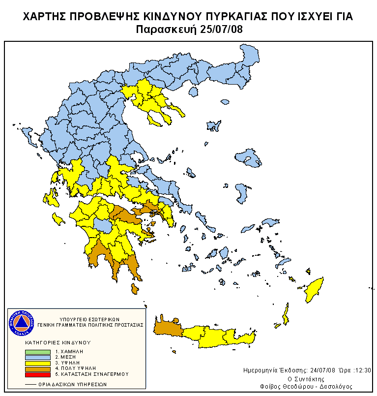 Ημερήσιος Χάρτης Πρόβλεψης Κινδύνου Πυρκαγιάς 25/07/2008