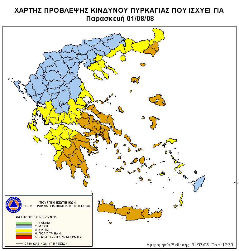 Ημερήσιος Χάρτης Πρόβλεψης Κινδύνου Πυρκαγιάς 01/08/2008