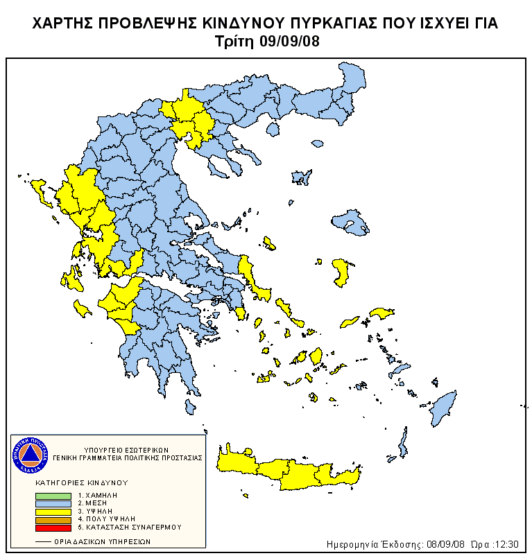 Ημερήσιος Χάρτης Πρόβλεψης Κινδύνου Πυρκαγιάς 09/09/2008